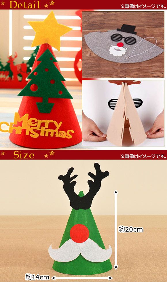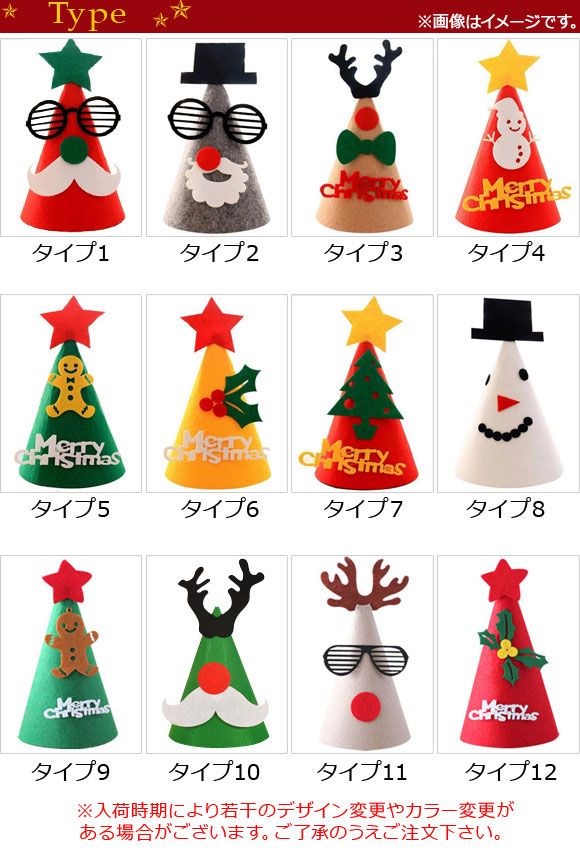 AP クリスマス帽子 フェルトタイプ パーティーやイベントにおススメ MerryChristmas♪ 選べる12タイプ AP-AR125 タイプ: タイプ1 タイプ2 タイプ3 タイプ4 タイプ5 タイプ6 タイプ7 タイプ8 タイプ9 タイプ10 タイプ11 タイプ12