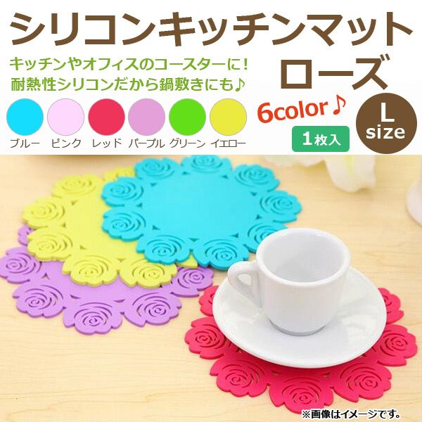 AP シリコンキッチンマットローズ Lサイズ 耐熱性シリコン製 キッチンやオフィスのコースターに! 選べる6カラー AP-KK0011-RL1 カラー: レッド ブルー イエロー グリーン パープル ピンク