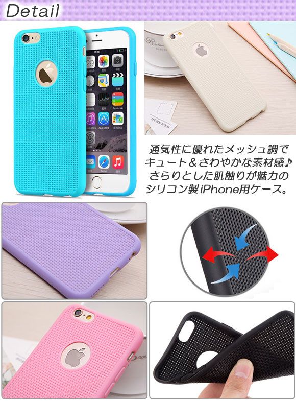 iPhoneケース 通気性の良いメッシュ調! 選べる14カラー iPhone8 AP-TH189 カラー: ブラック ホワイト レッド ブルー イエロー パープル ピンク ネイビー アイボリー ローズ ビビッドピンク ミントグリーン ライトグリーン ライトブルー