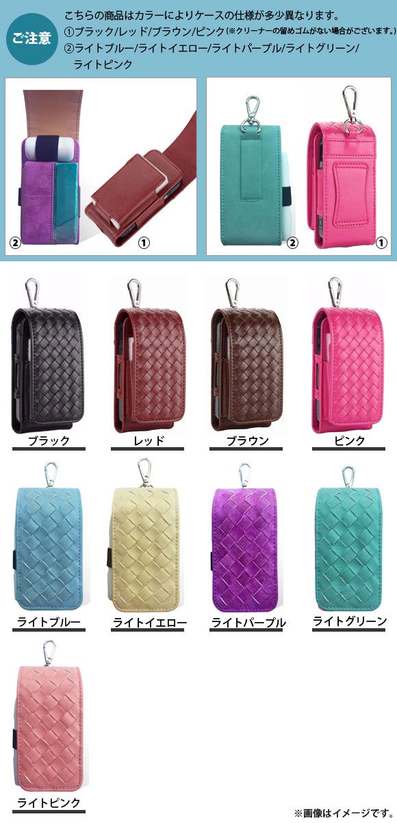 AP アイコス用ケース 2.4Plus/2.4対応 PUレザー ホルダー付 編み込み 専用ケースで全て収納出来て便利! 選べる9カラー AP-UJ0231 カラー: ブラック レッド ピンク ブラウン ライトイエロー ライトグリーン ライトパープル ライトピンク ライトブルー