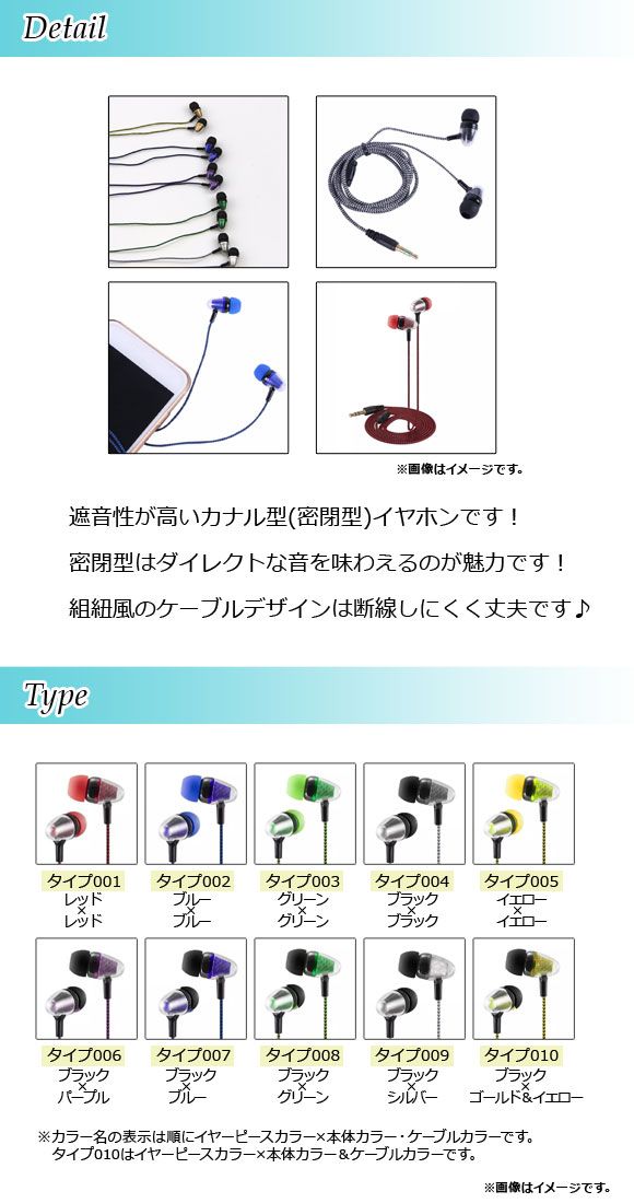 AP カナル型イヤホン 約1.1m ケーブル 組紐風デザイン! 3.5mm ステレオミニプラグ 密閉型でダイレクトな音質! 選べる10バリエーション AP-UJ0277-1M