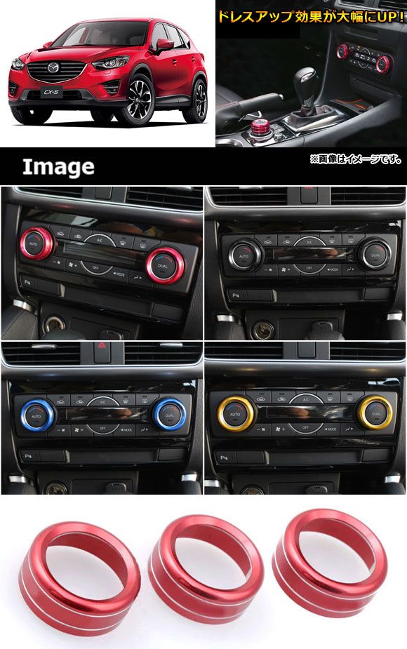 ダイヤルリングカバー エアコン・マツダコネクト用 アルミ製 マツダ 汎用 CX-5/アクセラ/アテンザなど 選べる4カラー 入数:1セット(3個) AP-IT217