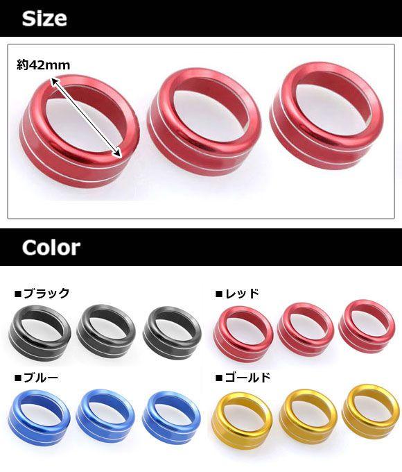 ダイヤルリングカバー エアコン・マツダコネクト用 アルミ製 マツダ 汎用 CX-5/アクセラ/アテンザなど 選べる4カラー 入数:1セット(3個) AP-IT217 カラー: ブラック レッド ブルー ゴールド