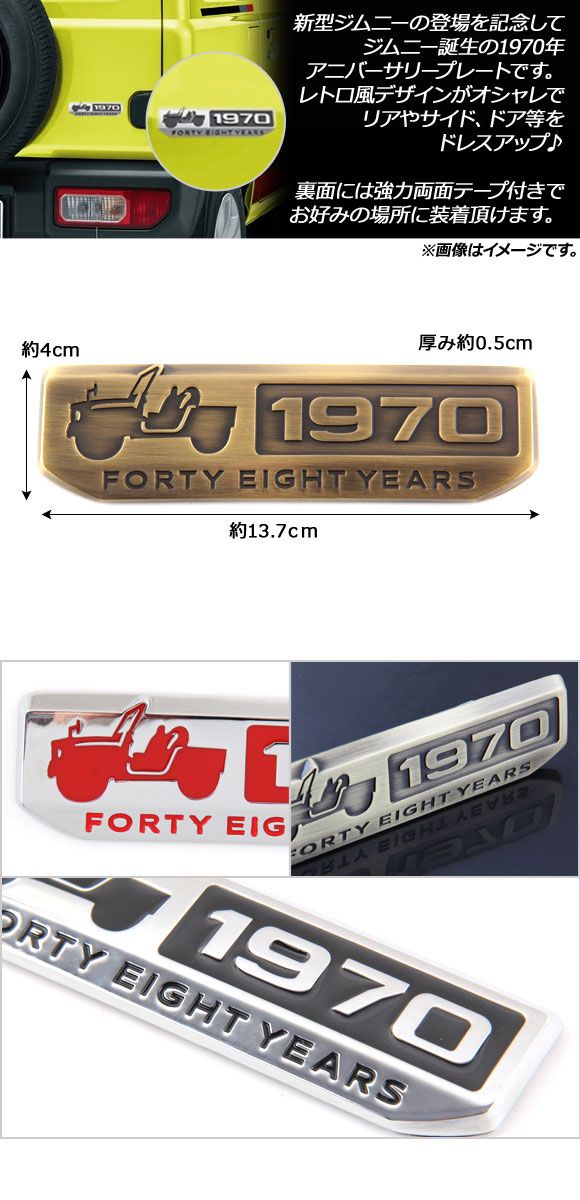 501677890 ジムニーシエラ シエラ ジムニーワイド ワイド ジムニー1300 1300 Jimny ジムニイ ジムニィ LJ10 LJ20 SJ10 SJ20 SJ30 SJ40 JA71 JA51 JA11 JB31 JA12 JA22 JB32 JB23 JB33 JB43 JB64 JB74 1970エンブレム アニバーサリーエンブレム 48周年エンブレム 1970年プレート 48周年プレート 1970年 アニバーサリー 誕生 プレートステッカー エンブレム プレート ステッカー シール デカール カーステッカー カーエンブレム デザインプレート デザインステッカー 3Dステッカー 3D デザイン レトロ アンティーク リア バック ボディ ドア サイドドア アクセサリー おしゃれ ドレスアップ カスタマイズ カスタム カラー ブラック レッド ブロンズ 黒 BLACK 赤 RED 銅 BRONZE AP-AS169-BK AP-AS169-RD AP-AS169-BZ automobile motorcar オートモービル モーターカー カー 車 自動車 車両 HW05S4915-S HW05S4915-R HW05S4915-BK HW05S4915 4580589878628 4580589878635 4580589878642