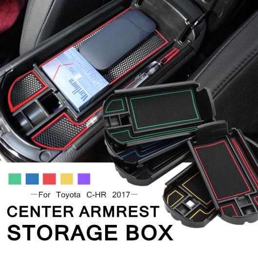 AL 車用内装パーツ インテリア センターアームレスト 収納 ボックス トレイ トヨタ C-HR 2016 2017 3 ノンスリップマット 265×135 45 mm ABS レッド,ブルー,イエロー,グリーン,パープル AL-AA-8342