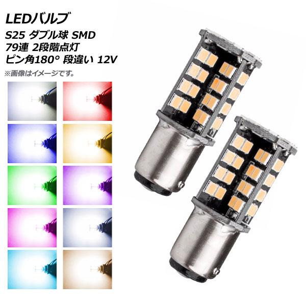 AP LEDバルブ S25 ダブル球 SMD 79連 2段階点灯 ピン角180° 段違い 12V 選べる10カラー AP-LB128 入数:1セット(2個)