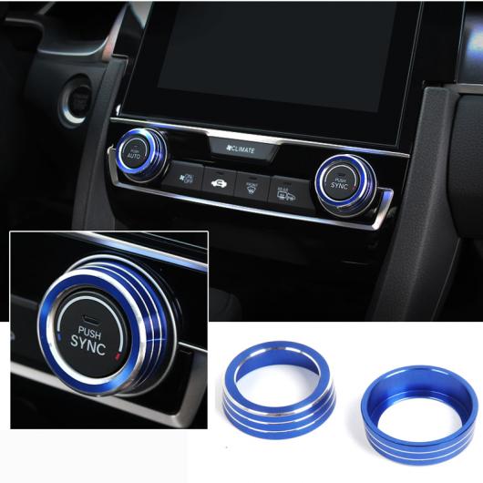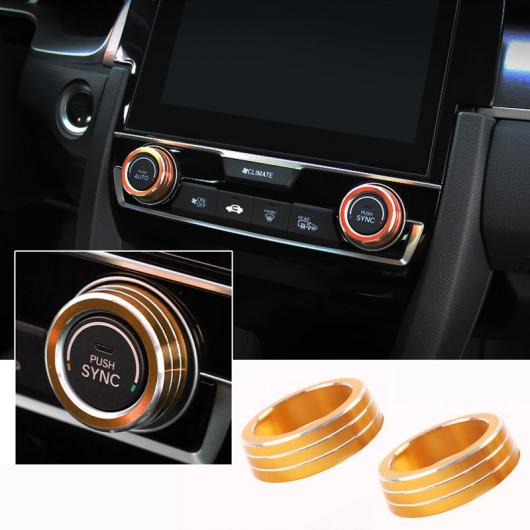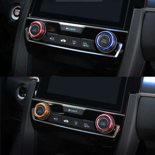 AL 車用内装パーツ 2ピース ホンダシビック2016 エアコン ノブ装飾サークル メタル 自動車内装 選べる3カラー レッド,ブルー,ゴールド AL-AA-7509