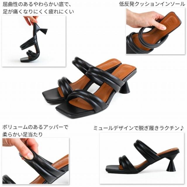 【26春夏新作カラー追加】スクエアトゥパデッドダブルベルトミュールサンダル