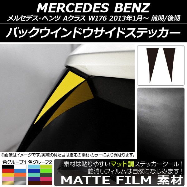バックウインドウサイドステッカー メルセデス・ベンツ Aクラス W176 2013年01月〜 マット調 色グループ2 AP-CFMT2775 入数:1セット(2枚)