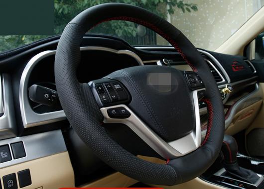 DIY ステアリング ホイール カバー ソフト レザー 編み上げ ハンドル 適用: トヨタ ハイランダー 2015-2018 ブラック 1ピース・ブラック レッド ライン AL-EE-7688 AL