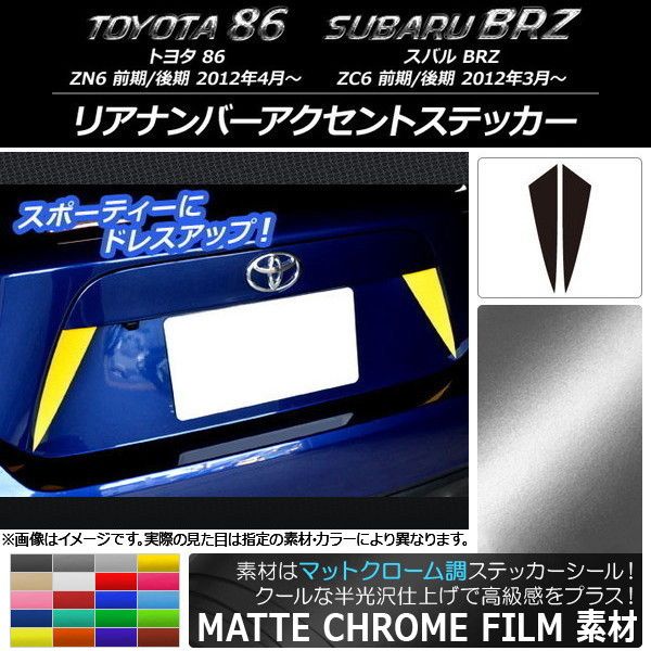 リアナンバーアクセントステッカー マットクローム調 トヨタ/スバル 86/BRZ ZN6/ZC6 前期/後期 2012年03月〜 選べる20カラー 入数:1セット(2枚) AP-MTCR2185