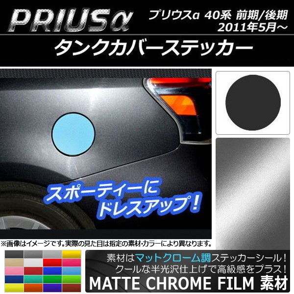 タンクカバーステッカー マットクローム調 トヨタ プリウスα ZVW40/ZVW41 前期/後期 2011年05月〜 選べる20カラー AP-MTCR235 カラー: ブラック ホワイト レッド ブルー イエロー グリーン オレンジ パープル ピンク ネイビー ブラウン ボルドー ゴールド シルバー ガンメタリック マゼンタ ライトグリーン ライトブルー ライトゴールド シアン