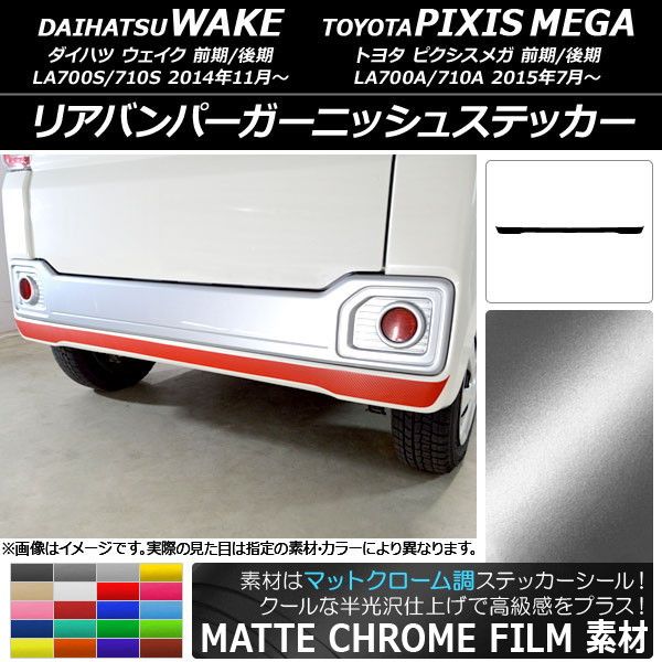 リアバンパーガーニッシュステッカー ダイハツ/トヨタ ウェイク/ピクシスメガ LA700系 前期/後期 2014年11月〜 マットクローム調 選べる20カラー AP-MTCR3021