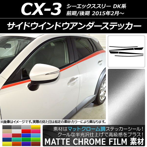 AP サイドウインドウアンダーステッカー マットクローム調 マツダ CX-3 DK系 前期/後期 2015年02月〜 選べる20カラー AP-MTCR3198 入数:1セット(6枚)