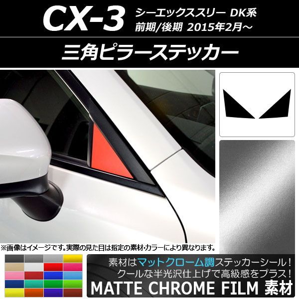 三角ピラーステッカー マットクローム調 マツダ CX-3 DK系 前期/後期 2015年02月〜 選べる20カラー 入数:1セット(2枚) AP-MTCR3195