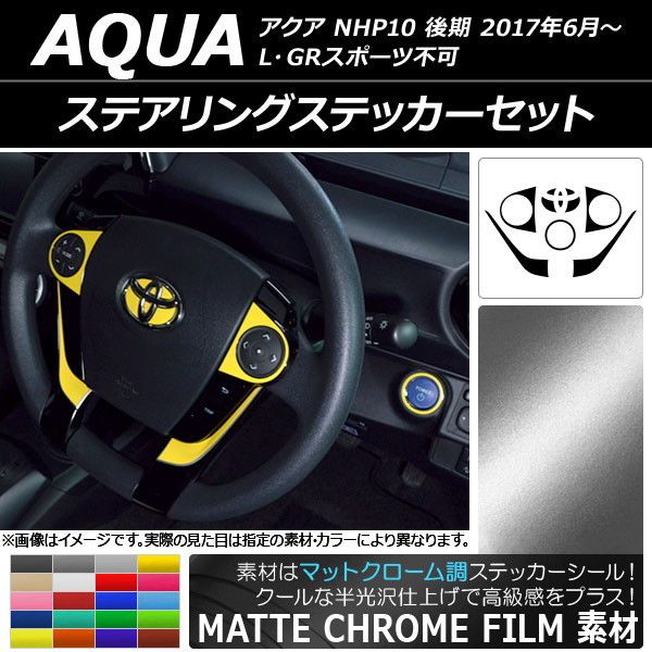 ステアリングステッカーセット マットクローム調 トヨタ アクア NHP10 後期 L/GRスポーツ不可 2017年06月〜 選べる20カラー AP-MTCR3392