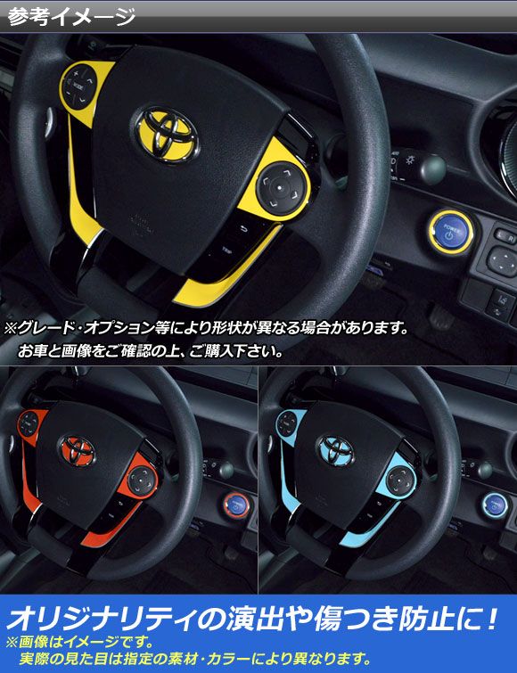 ステアリングステッカーセット マットクローム調 トヨタ アクア NHP10 後期 L/GRスポーツ不可 2017年06月〜 選べる20カラー AP-MTCR3392 カラー: ブラック ホワイト レッド ブルー イエロー グリーン オレンジ パープル ピンク ネイビー ブラウン ボルドー ゴールド シルバー ガンメタリック マゼンタ ライトグリーン ライトブルー ライトゴールド シアン