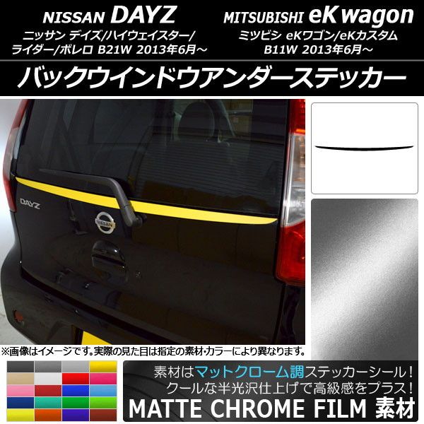 バックウインドウアンダーステッカー ニッサン/ミツビシ デイズ/eKワゴン B21W/B11W 前期/後期 2013年06月〜 マットクローム調 選べる20カラー AP-MTCR3676
