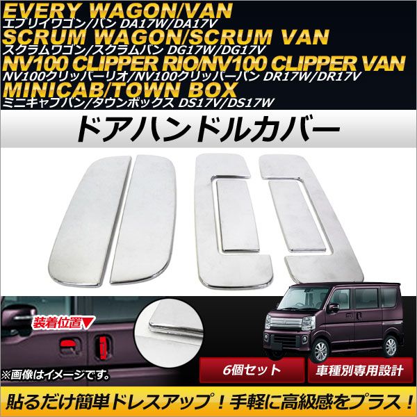 ドアハンドルカバー ニッサン NV100クリッパーリオ/NV100クリッパーバン DR17W,DR17V 2015年03月〜 メッキ仕上げ ABS樹脂製 入数:1セット(6個) AP-XT264