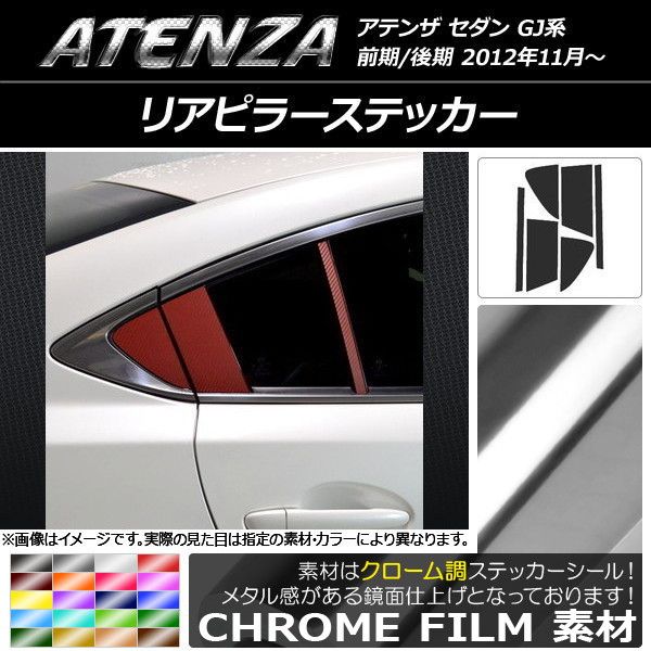 リアピラーステッカー クローム調 マツダ アテンザセダン GJ系 前期/後期 選べる20カラー 入数:1セット(6枚) AP-CRM1778