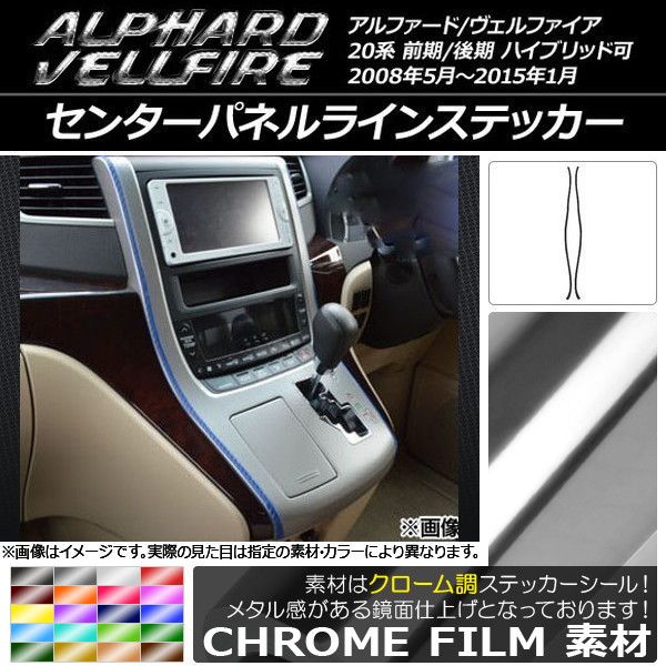 センターパネルラインステッカー トヨタ アルファード/ヴェルファイア 20系 前期/後期 クローム調 選べる20カラー AP-CRM698 入数:1セット(2枚)