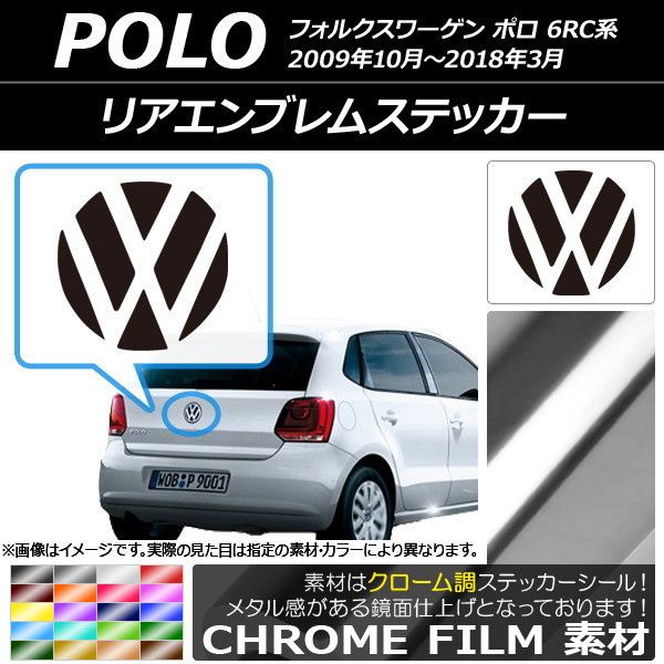 リアエンブレムステッカー クローム調 フォルクスワーゲン ポロ 6RC系 2009年10月〜2018年03月 選べる20カラー AP-CRM2662