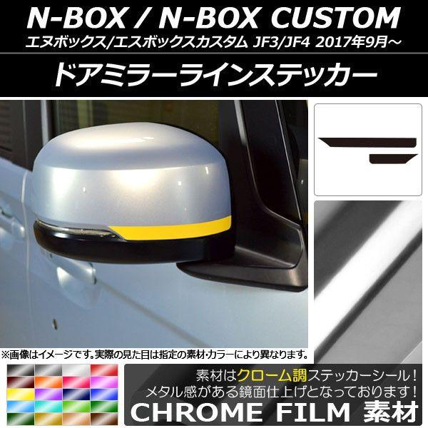 ドアミラーラインステッカー クローム調 ホンダ N-BOX/N-BOXカスタム JF3/JF4 2017年09月〜 選べる20カラー 入数:1セット(2枚) AP-CRM2844
