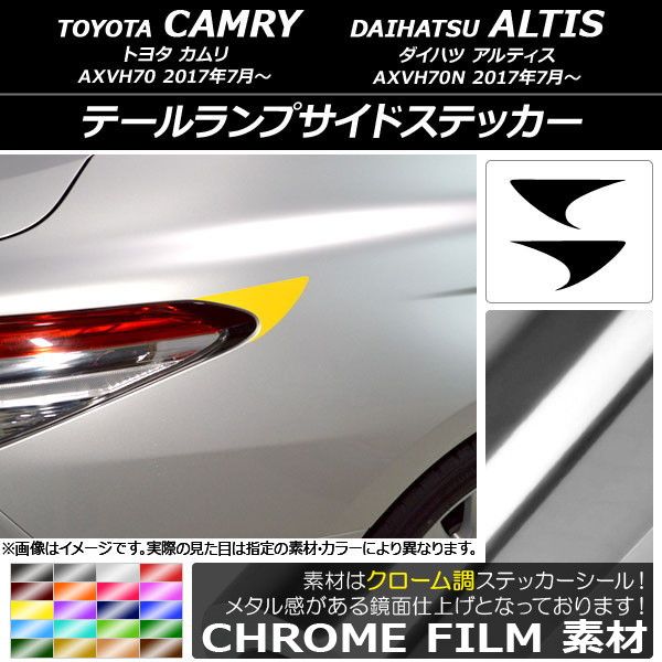 テールランプサイドステッカー クローム調 トヨタ/ダイハツ カムリ/アルティス XV70系 2017年07月〜 選べる20カラー 入数:1セット(2枚) AP-CRM3128 カラー: ブラック ホワイト レッド ブルー イエロー グリーン オレンジ パープル ピンク ネイビー ブラウン ボルドー ゴールド シルバー マゼンタ ダークグリーン ライトグリーン ライトブルー ローズゴールド シアン