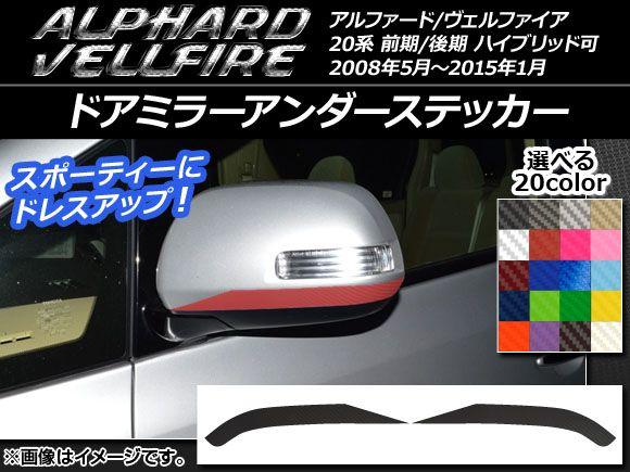 ドアミラーアンダーステッカー カーボン調 トヨタ アルファード/ヴェルファイア 20系 前期/後期 ハイブリッド可 選べる20カラー 入数:1セット(2枚) AP-CF707