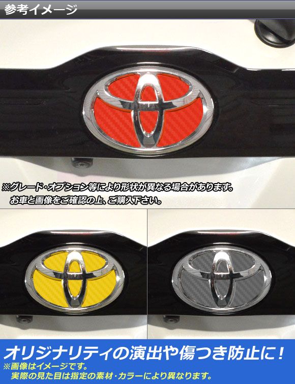 エンブレムステッカー カーボン調 トヨタ汎用タイプ フロント/リアどちらかに使用可能 選べる20カラー AP-CF1788 カラー: ブラック ホワイト レッド ブルー イエロー グリーン オレンジ パープル ピンク ネイビー ブラウン ボルドー クリア ゴールド シルバー ガンメタリック マゼンタ ダークグリーン メタリックブルー ライトブルー