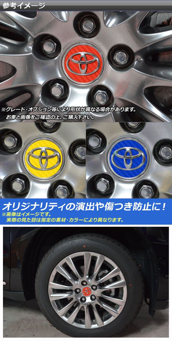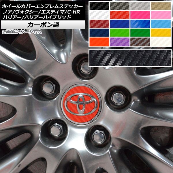 ホイールカバーエンブレムステッカー カーボン調 トヨタ C-HR エスティマ ノア/ヴォクシー ハリアー/ハリアーハイブリッド 選べる20カラー AP-CF2675 カラー: ブラック ホワイト レッド ブルー イエロー グリーン オレンジ パープル ピンク ネイビー ブラウン ボルドー クリア ゴールド シルバー ガンメタリック マゼンタ ダークグリーン メタリックブルー ライトブルー