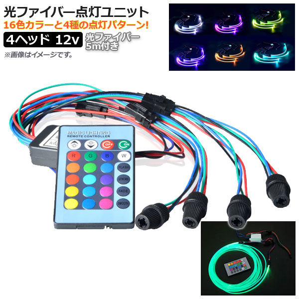 光ファイバー点灯ユニット 12V 4ヘッド 光ファイバー 6mm 5m 付き リモコン操作で光ファイバーがカラフルに発光・点滅! AP-LL148-4-6MM キット セット 点灯セット 点灯キット 光 ランプ ライト 点灯 点滅 発光 ストロボ フラッシュ フェード ジャンプ スムース 輝度 調節 コントローラー リモコン リモート 汎用 ナイト ナイトライト マジック マジックライト イルミネーション イルミ ファッションライト ファッション ドレスアップ カスタム カスタマイズ 電装パーツ 電装 電飾 装飾 イベント パーティー レーシングカー イベントカー 外装 内装 インテリア プール 庭 飾り クリスマス ガーデニング リビング 部屋 赤 白 グリーン ブルー イエロー ピンク パープル 4580589814893 automobile motorcar オートモービル モーターカー カー 車 バイク 自動車 車両 motorcycle 4輪車 2輪車 四輪 二輪 四輪車 二輪車 カラフル RED WHITE GREEN BLUE YELLOW PINK PURPLE 501647000