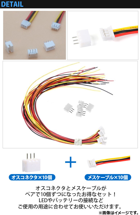 オスコネクタとメスケーブルがペアで10個ずつになったお得なセット!