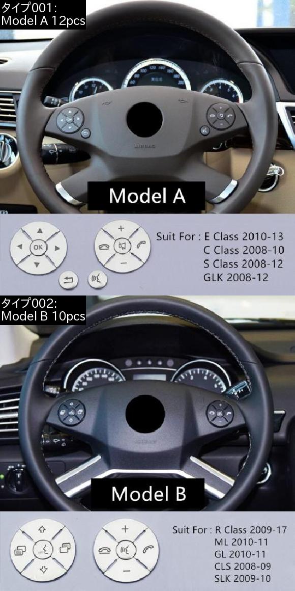 AL ステアリングホイール ボタン デカール メルセデスベンツ C E R S クラス W204 GLK X204 CLS GL SLK インテリア 選べる2バリエーション Model A 12pcs・Model B 10pcs AL-DD-7211