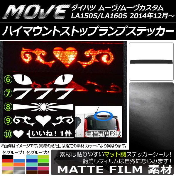 ハイマウントストップランプステッカー マット調 ダイハツ ムーヴ/ムーヴカスタム LA150S/LA160S 色グループ1 タイプグループ2 AP-CFMT1200 色グループ1: ブラック ホワイト レッド ブルー イエロー オレンジ ピンク グレー ゴールド シルバー