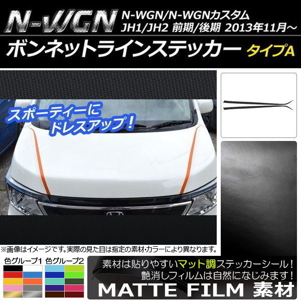 ボンネットラインステッカー ホンダ N-WGN/N-WGNカスタム JH1/JH2 前期/後期 2013年11月〜 マット調 タイプA 色グループ1 AP-CFMT493 入数:1セット(2枚)