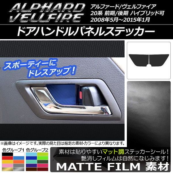 ドアハンドルパネルステッカー マット調 トヨタ アルファード/ヴェルファイア 20系 ハイブリッド可 色グループ1 入数:1セット(2枚) AP-CFMT681 色グループ1: ブラック ホワイト レッド ブルー イエロー オレンジ ピンク グレー ゴールド シルバー