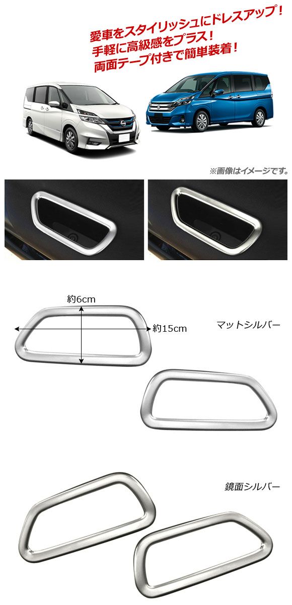 ドアポケットカバー 日産 セレナ C27系 G/X/S/ハイウェイスター e-POWER含む 2016年08月〜 マットシルバー ABS樹脂製 入数:1セット(2個) AP-IT148-MSI インナードアノブカバー ドアノブカバー ドアポケットトリム ドアポケット 収納ポケット アームレスト ストレージボックス トレイ トレー 収納 ポケット 小物入れ 車内収納 インナードア ガーニッシュ リム トリム ベゼル カバー ニッケルメッキ ニッケル 艶消し つや消し シルバー silver MATT 銀 マット ABS ABS樹脂 樹脂 保護 パーツ 装飾 内装 内装パーツ インテリア スタイリッシュ ドレスアップ カスタム カスタマイズ プロテクト プロテクター 傷予防 傷付き防止 アクセント SERENA C27 GC27 GFC27 HC27 HFC27 GNC27 GFNC27 e-POWER イーパワー e-パワー G X S ハイウェイスター ライダー HIGHWAY STAR ニスモ NISMO AUTECH オーテック ニッサン NISSAN 日産自動車 イメチェン イメージチェンジ きせかえ 着せ替え 着せかえ automobile motorcar オートモービル モーターカー カー 車 自動車 車両 HN09N5505B 501392200-1