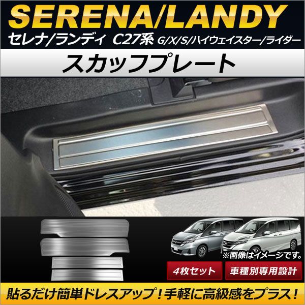 スカッフプレート ニッサン セレナ C27系 G/X/S/ハイウェイスター/ライダー 2016年08月〜 ステンレス製 入数:1セット(4個) AP-SG061