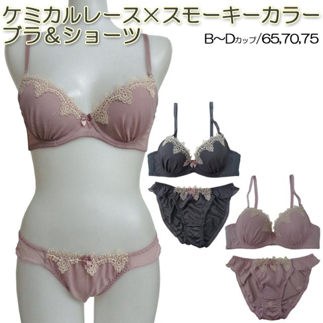 ケミカルレースブラジャー&ショーツ ブラジャー ショーツ セット ブラセット ブラショーツ B65 B70 B75 C65 C70 C75 D65 D70 D75 フェミニン インナー 下着 ナイトウエア レディースインナー 3/4カップ メール便送料無料