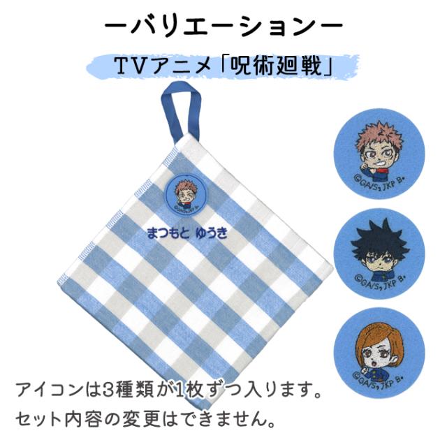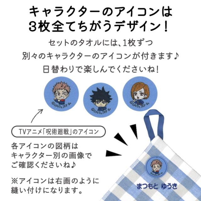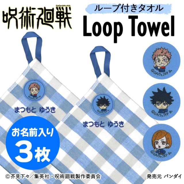 名入れ 刺繍 ループタオル 呪術廻戦 3枚 名前 子供 男の子 ギフト ハンドタオル キャラクター OR