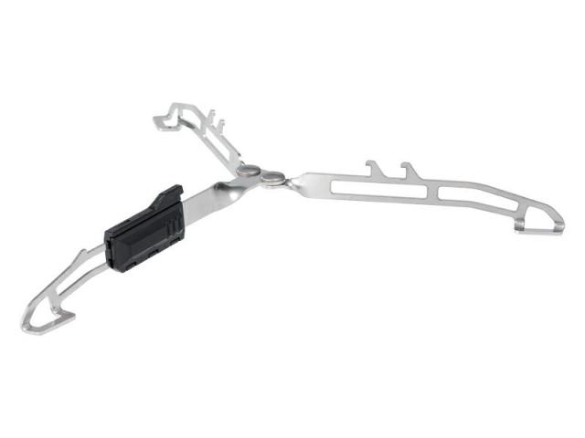 ガスカートリッジの底部に取り付けてバーナーを安定させるスタンドです。折りたためば14cm のボールペンサイズです。