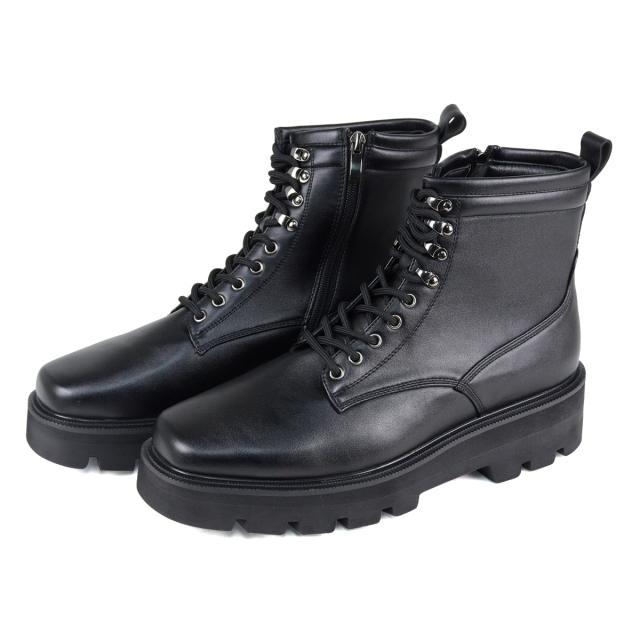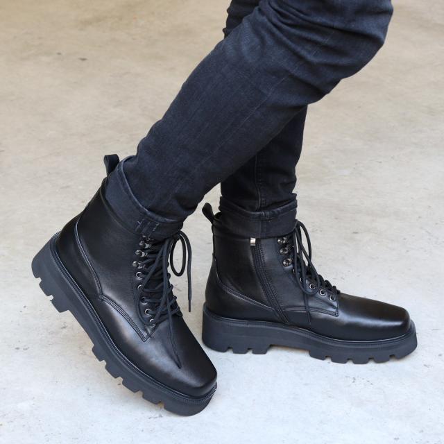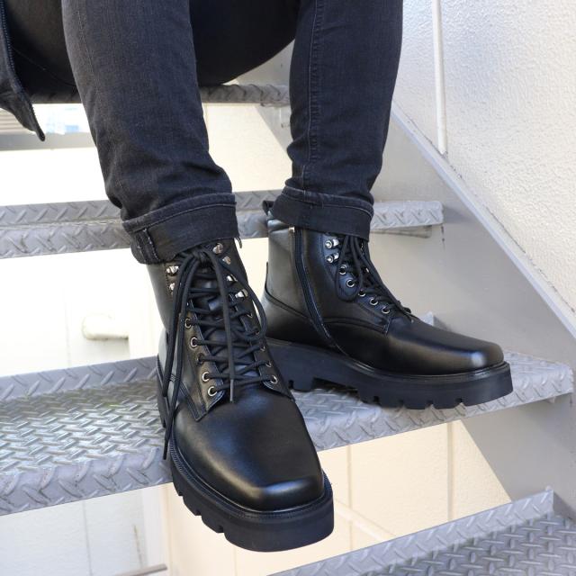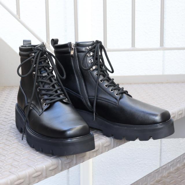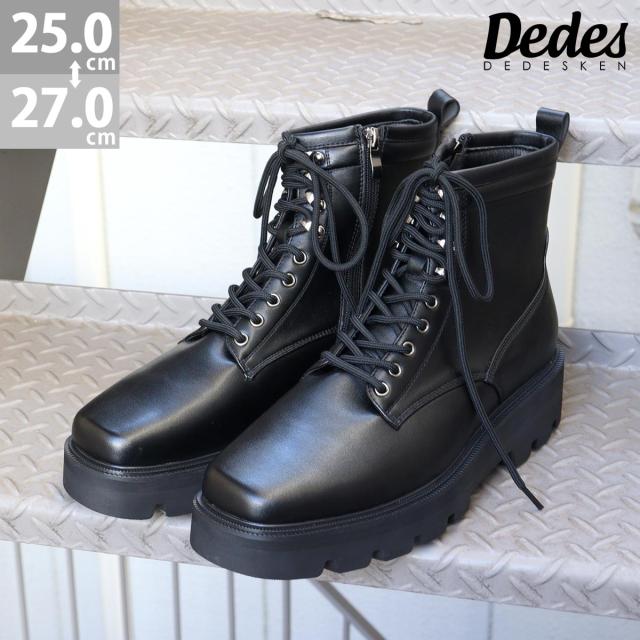 レースアップブーツ メンズ スクエアトゥ 9ホール 編み上げ 厚底 タンクソール ショートブーツ 5cmヒール No.6320 25.0cm〜27.0cm 黒 ブラック Dedes デデス