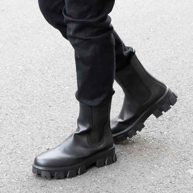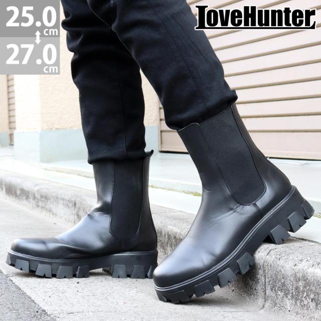 サイドゴアブーツ メンズ ラウンドトゥ タンクソール 防滑 ミドルブーツ 厚底 5cmヒール No.1719 25.0cm〜27.0cm 黒 ブラック LOVEHUNTER ラブハンター