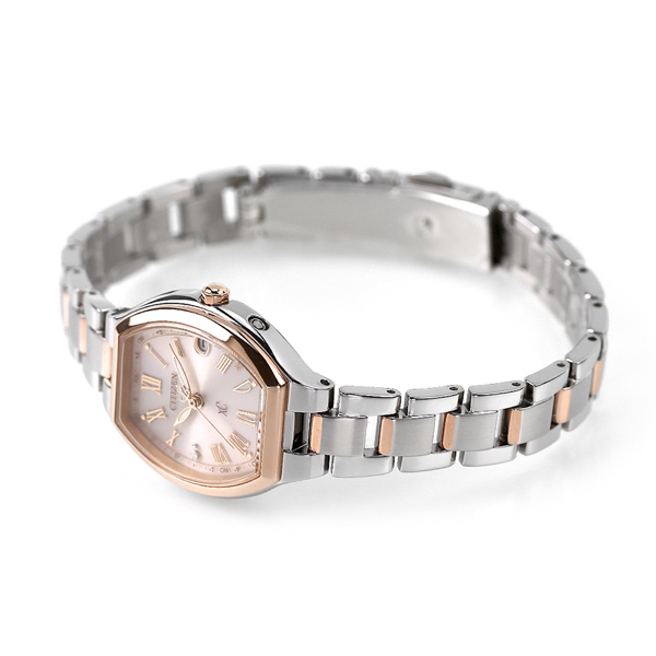 正規品 7年保証キャンペーン 送料無料 シチズン クロスシー ベーシックコレクション エコ・ドライブ電波時計 日本製 エコ・ドライブ電波時計 レディース 腕時計 ES9364-57W CITIZEN xC basic collection Titania Happy Flight Eco-Drive アナログ ◆前を向く女性を応援するエンパワーウオッチブランド、シチズンxC(クロスシー)。ベーシックコレクションで人気のトノー型モデルに、シックで愛らしいデザインのローマ字フォントタイプが登場。光にインスパイアされた、やわらかなデザインが魅力のトノー型モデル。文字板はフェミニンな印象の淡いピンクカラー。洗練されたデザインのローマ字フォント、4時と5時の間にあるTYO位置にはきらめく光のアクセントが女性の心をくすぐります。ケースとバンドの隙間にピンクゴールドをあしらった、クロスシーらしさが漂うツートン仕様。上品な華やかさを演出しています。 発売日:2022年2月発売