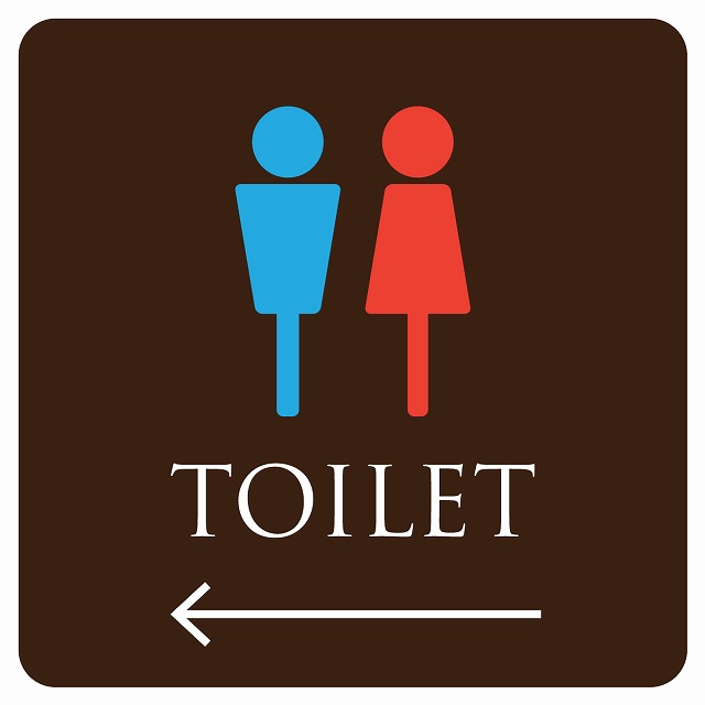 カラーはブラウンにピクトサインの男女のデザインです!
