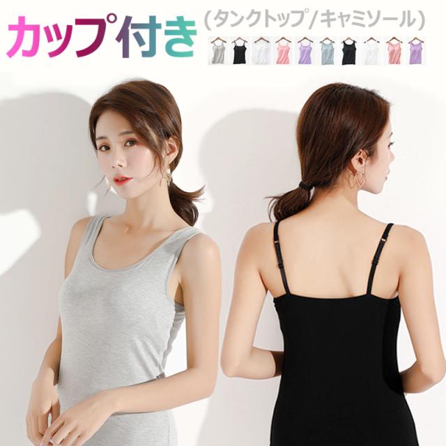 身生地綿100%素材のカップ付きタンクトップ/キャミソール。