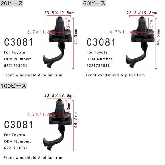 バンパー ファスナー 6221733031 適用: トヨタ カムリ XV40 フロント シールド Aピラー トリム プラグ 100ピース AL-MM-0691 AL
