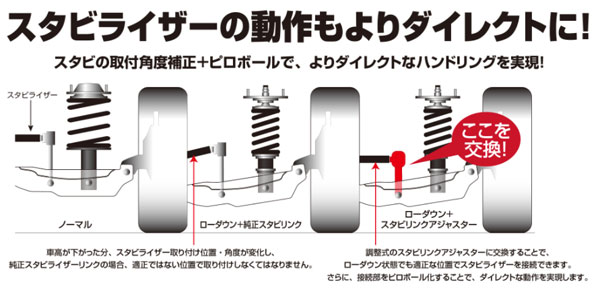 ●ローダウンしたことによる、スタビライザーの角度を補正し、適正な位置での使用が可能。