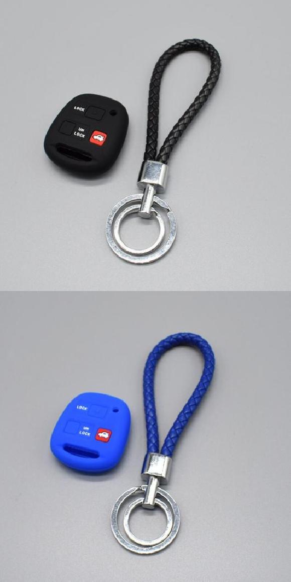 キーカバー 3ボタン シリコン ラバー キー フォブ カバー ケース セット ホルダー シェル 適用: トヨタ カムリ プラド カローラ キー カバー ブラックセット・ブルーセット AL-II-4562 AL